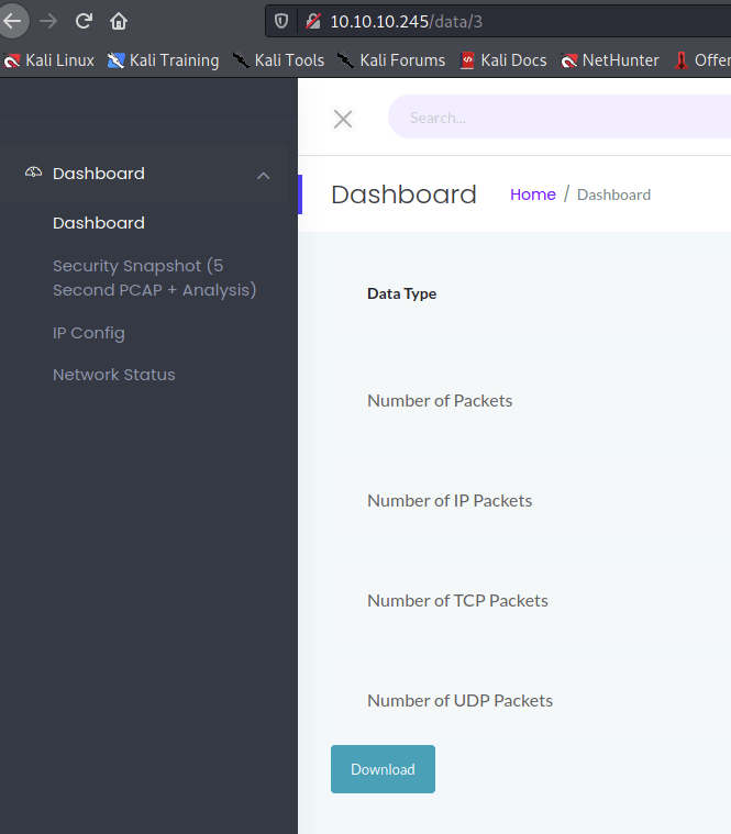 I clicked and it downloaded a pcap file. This current one only shows me information on my own connectivity though, so not very useful. However, I noticed in the url parameter that the entry was number coded, so I try to enter 0 as the earliest as I could back to and download that one. It allowed it.