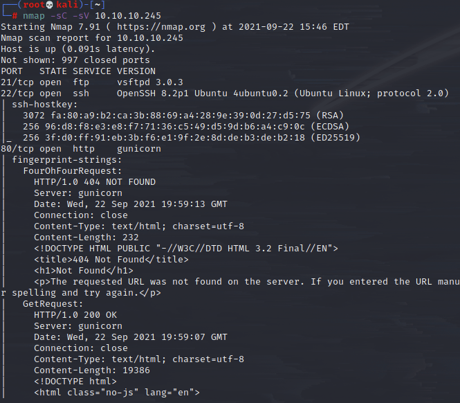 I booted up and launched my nmap scan with some immediate results:
