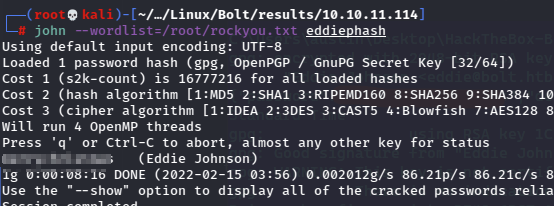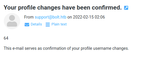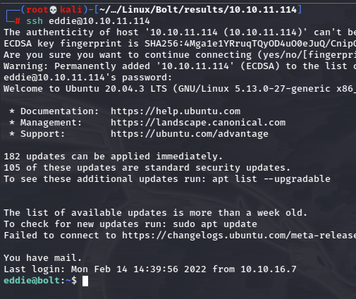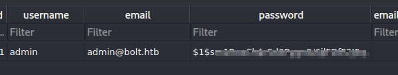 I suppose these can be used in RoundCube (mail.bolt.htb) or the bolt.htb/login form, but right now the password is just a md5crypt hash, so I need to try to crack it.