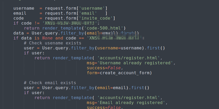 Again, I took a look at the source. I noted that this time because I’m logged in, I can check out the routes.py from the home folder.