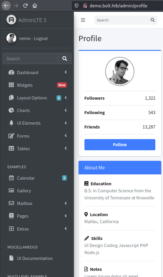 Enumeration: AdminLTE3 Dashboard