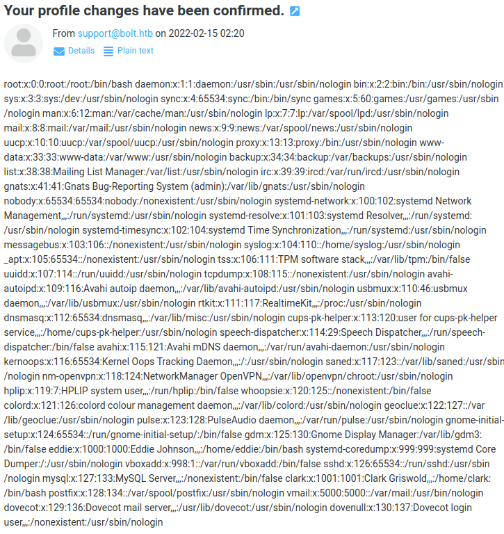 Trying with another payload to read /etc/passwd