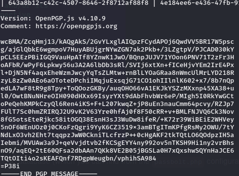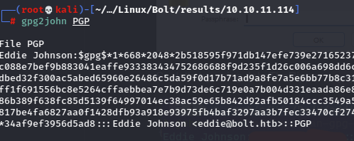 After cleaning the file with a little regex, it’s usable, but it’s encrypted, so I need to use gpg2john to convert and then crack it.