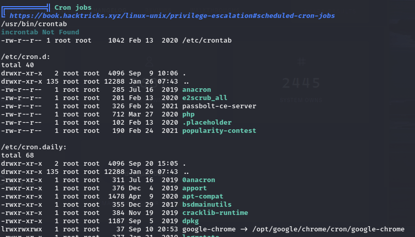 Looking back at the LinPEAS output, there were some cron jobs running.