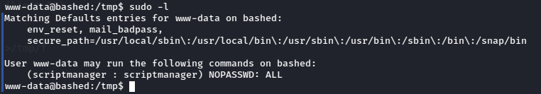 Checking sudo permissions for www-data showed some interesting info.