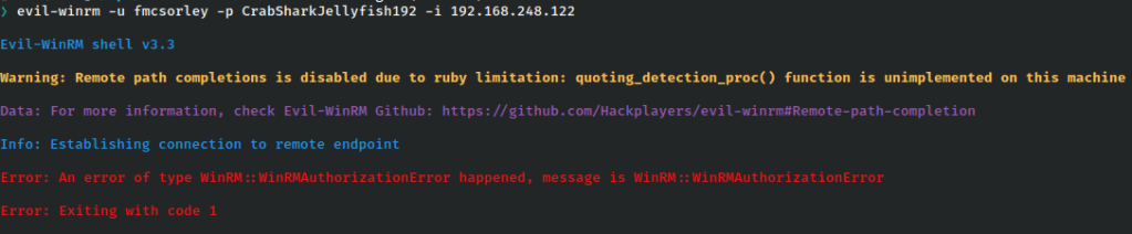 We do not have an open RDP port, but WinRM port is open, so we could try to get a remote shell with these credentials.