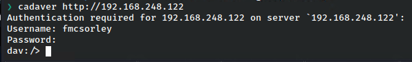 There are a plethora of ways to login to dav, but from Kali the easiest is to use cadaver, so let’s try it.