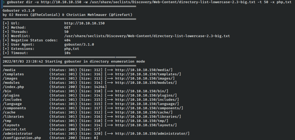 Upon directory busting with gobuster, we find an interesting text file in secret.txt