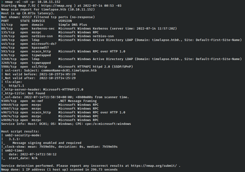 Usually when dealing with AD we’re looking to enumerate potential accounts that can be leveraged to access services. With no open web server here, SMB looks like a good place to start.