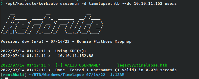 We can even verify this if we want to just check. I’ll do that with kerbrute.