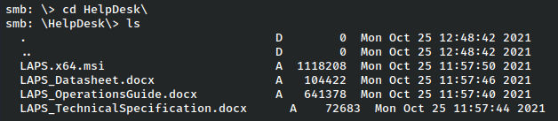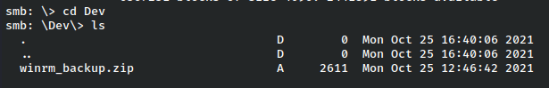 The Helpdesk folder is interesting because LAPS is used to access the admin password, so potentially once we get a shell, that could be a privilege escalation vector. However, for now we’ll just grab the winrm_backup archive and have a look at that.